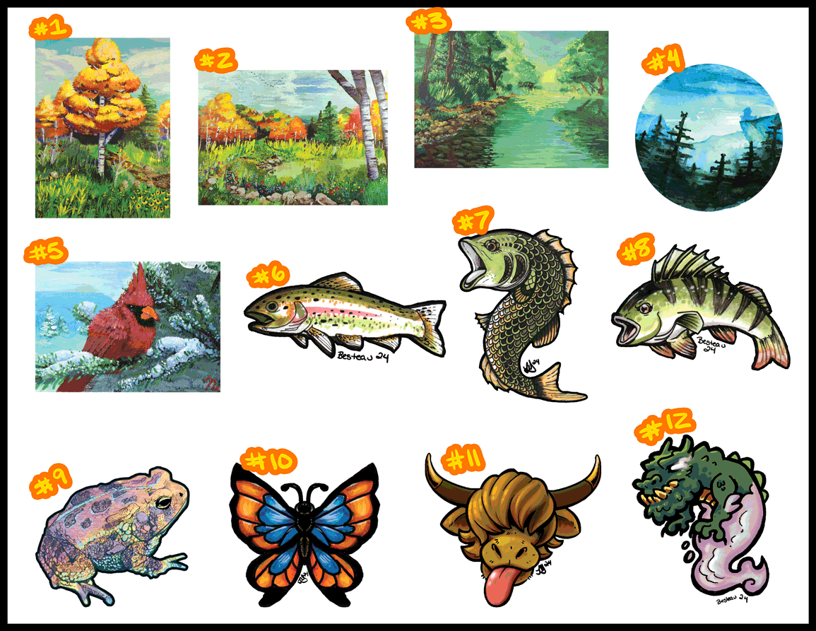 All stickers have a number affixed to it to make it easier for both your purchase and my inventory. The GIF shows a rotating slideshow example of all variants. Please click the image to see more detail and the number assigned. It takes about 7 seconds to flip through each panel of images.